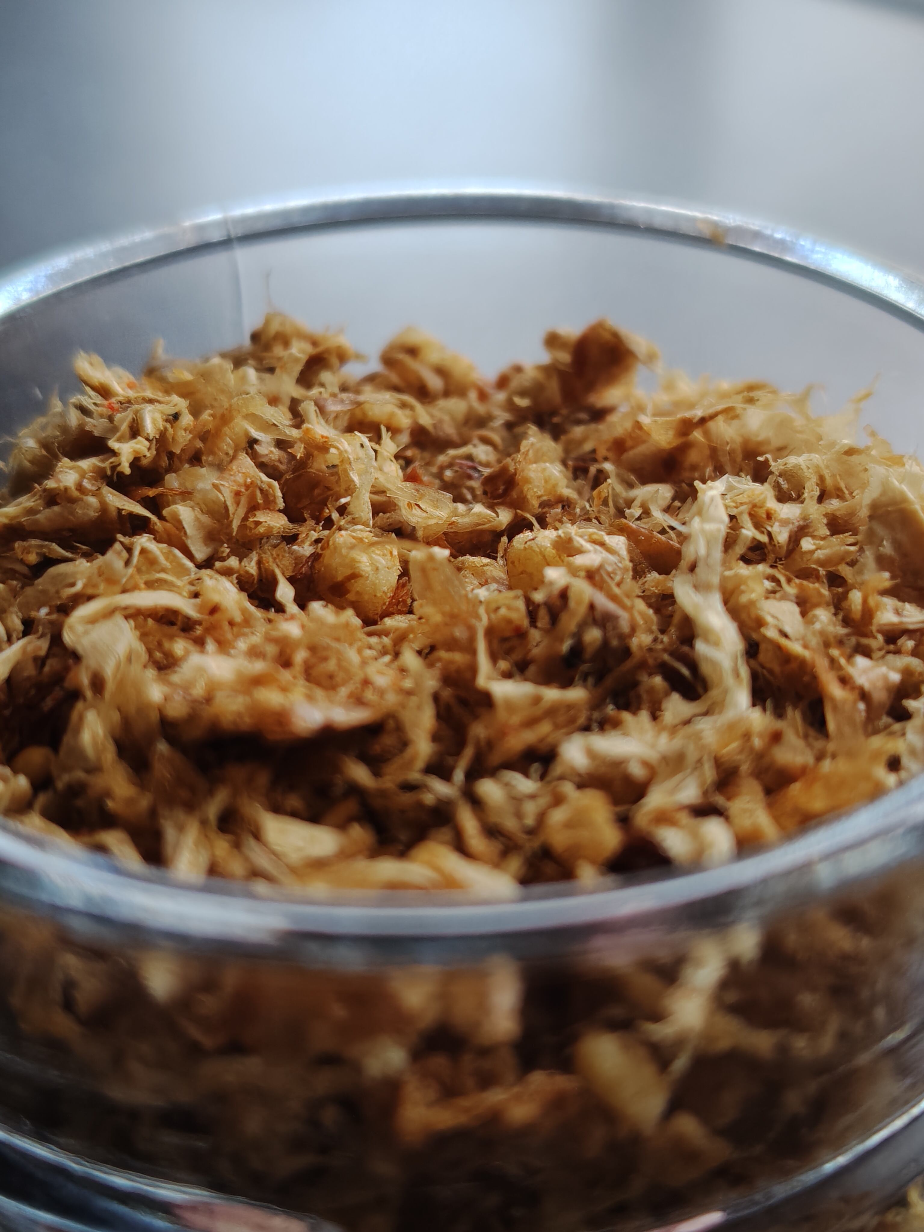 カツオの旨みと七味の香りが絶妙に調和した自家製ふりかけです。あられが加わることで、食感にもアクセントをプラス!ご飯やおにぎりにぴったりで、手軽においしさを引き立てます。